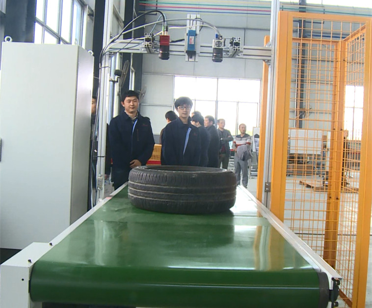 对轮胎的内外径和宽度以及轮毂的直径和宽度进行识别,防止操作者放错轮胎、轮毂。